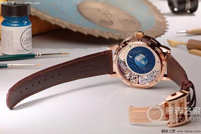 另一只朗格月相,RICHARD LANGE PERPETUAL CALENDAR “Terraluna”,是一只真正的天文月相腕表,内部使用行星轮系,能够在腕表的背部,展现地月运转规律。其中,月相不仅能够展现月亮的阴晴圆缺,同时也将围绕地球公转,毫无疑问,这样的大复杂月相体系,相比普通月相,要科技的多。