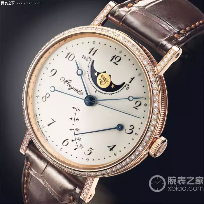 宝玑也有很多月相表,而且宝玑的月相也同样带有表情,相比起前两个品牌的月相脸,宝玑月相的细节更多,而其神情比较肃穆,但又是微笑着的,脸颊上还雕刻出了微笑时的痕迹。而它的眉毛却如同中国古代的武将,极其神武,并且男女款月相也不尽相同。